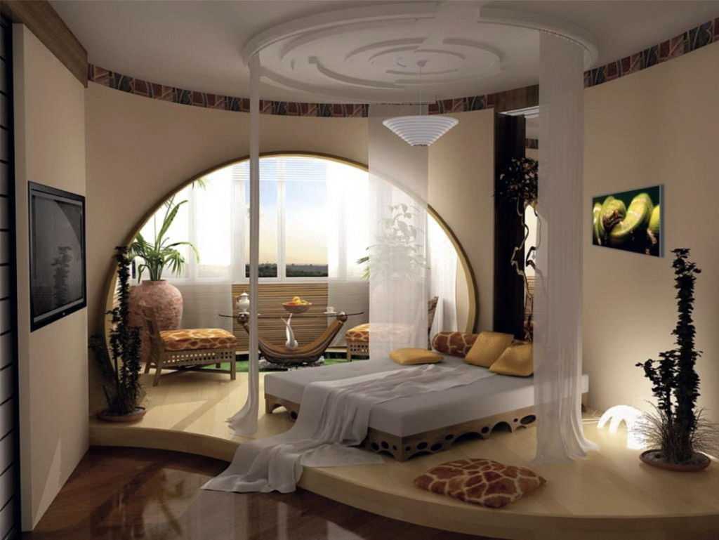 - арку на месте разрушенной стены, лоджию делают продолжением комнаты или зонируют, отделяя текстилем, складными ширмами, раздвижными или дверями-гармошкой;