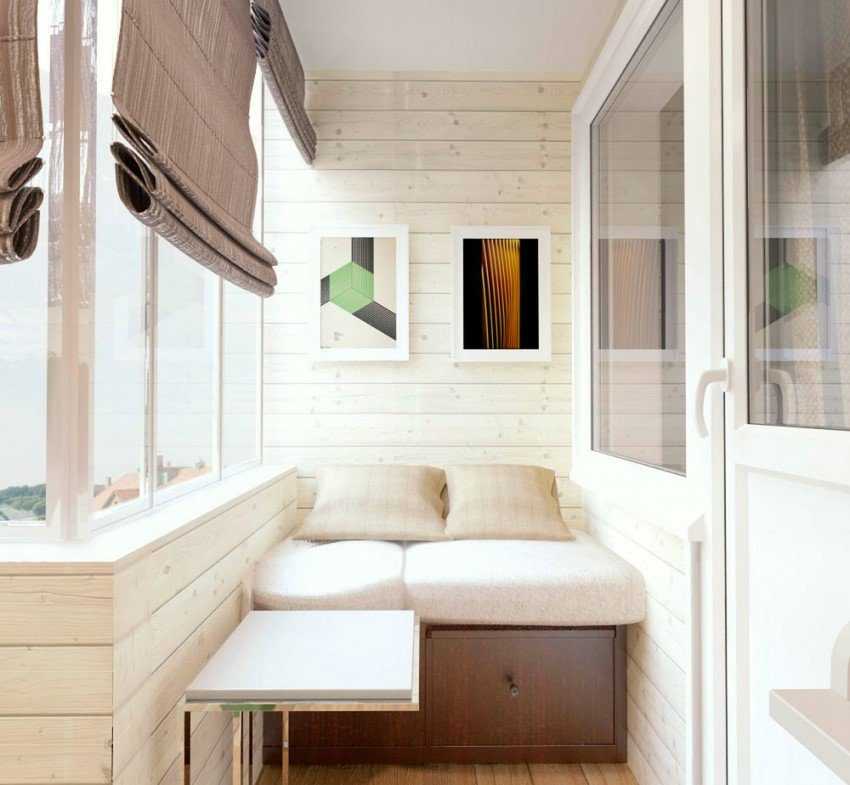 Для маленьких балконов целесообразно применять раздвижную и складную мебель. Оборудуют комнату столом с откидной столешницей, стульями-трансформерами, используемыми только по необходимости. Многие используют раздвижные компактные диваны (некоторые модели образуют спальное место). В дизайне балкона маленького размера функции столешницы иногда выполняют подоконники.
