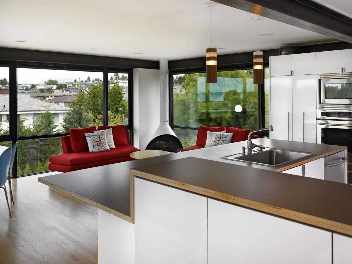 Барная стойка обычно используется в кухнях с большой площадью, но вы можете применить данный предмет интерьера на малой площади. В этом случае кухня с баром создает одну часть комнаты, а гостиная — другую. Однако барная стойка на ограниченном пространстве чаще всего не имеет высоких стульев, так как служит символическим разделением двух зон, как дополнительный верх и место для свежих овощей. Без стойки, возможно, комната покажется больше, но несколько пустой.