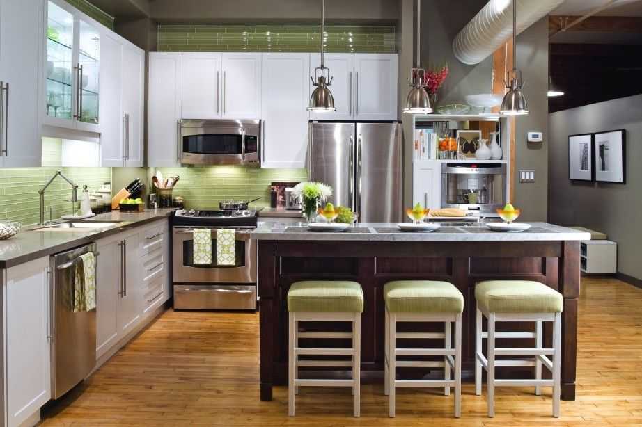 Существует несколько вариантов, при которых барная стойка будет замечательно комбинироваться с кухонным островом. При выборе того или иного варианта необходимо отталкиваться от параметров пространства и ожидаемого результата.