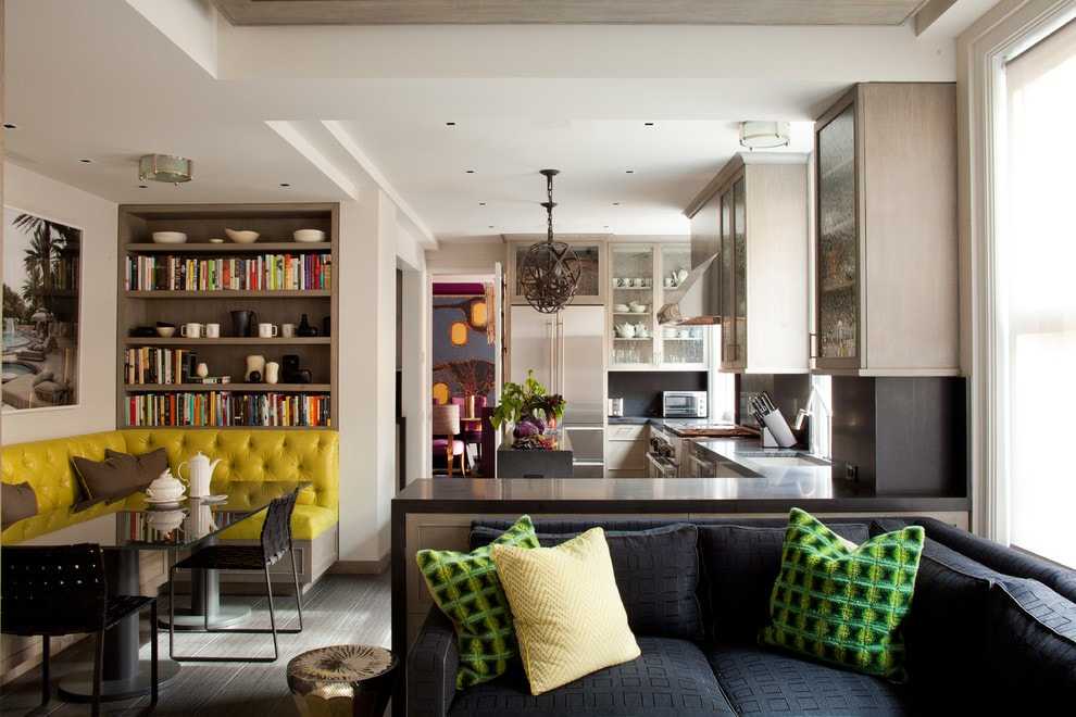 Идеи кухни гостиной в небольшой комнате с барной стойкой
