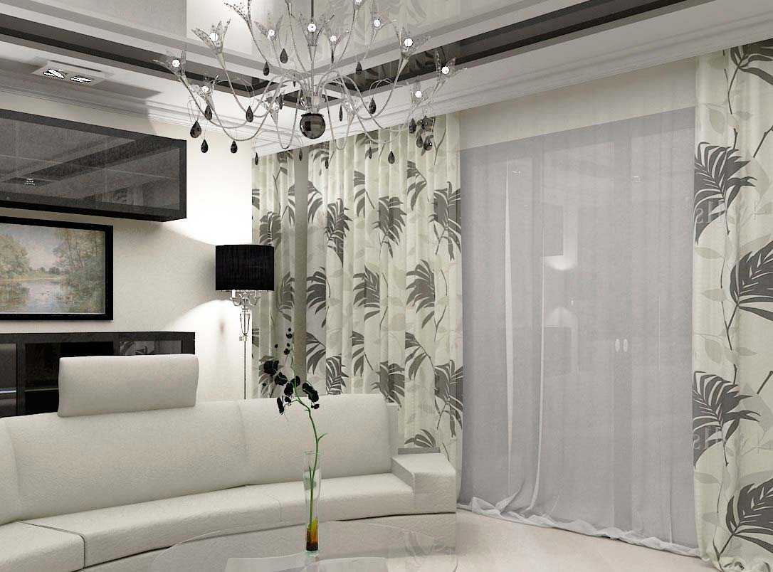 Новинкой штор для гостиной будет использование многослойных конструкций, которые включают в себя применение разнообразных по текстуре материалов. Для практичного их использования существуют специальные карнизы на дистанционном управлении.