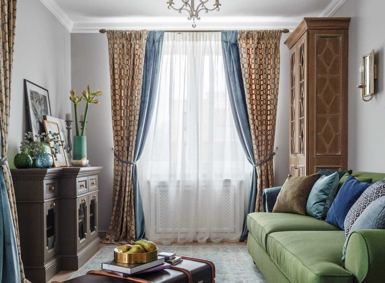 Учитывая тот факт, что гостиные, как правило, не могут быть маленького размера, классические шторы отлично подойдут к любому дизайну. Преимущество заключается в том, что классический тип штор обладает большим количеством подтипов, что позволяет более внимательно подойти к выбору.