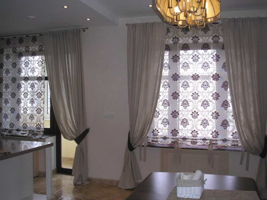 На кухне с применением роллет стоит и вовсе обойтись без дополнительной драпировки, особенно если из этой комнаты есть выход на балкон и его окна оформлены жалюзи или легкими классическими шторами.
