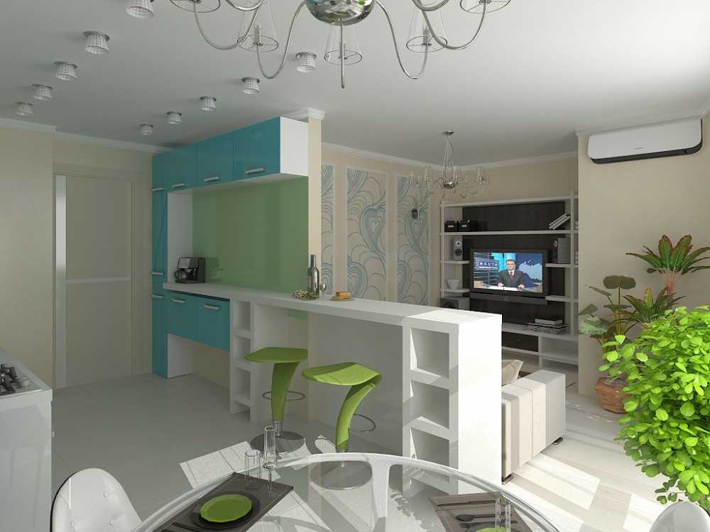 Остальные 20 метров нужно зонировать. Самое главное – отделить зону кухни.