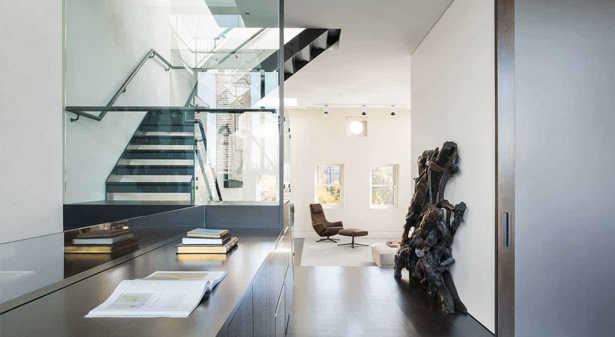 Стеклянная перегородка с узором в дизайне таунхауса