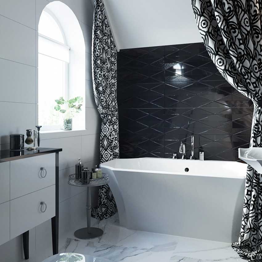 Оригинально будет смотреться ванная в черном цвете. Чаще всего этот глубокий цвет используют в качестве отдельных элементов или создания оригинальной акцентной стены. Монолитная черная ванная потребует использования хорошей системы освещения и может быстро надоесть своей монументальностью.