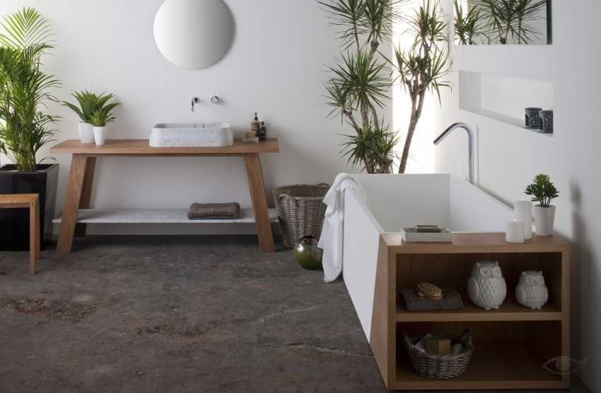 Деревянная ванна — этот тип ванны имеет дизайн, который может облагородить и украсить любую ванную комнату. Она устойчива и экологична одновременно, и ее можно найти в различных оттенках коричневого, в зависимости от ваших предпочтений.