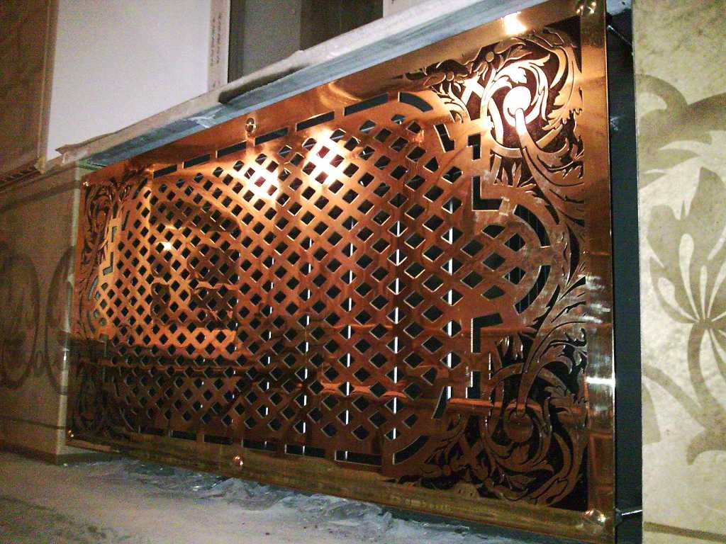 Благодаря небольшим зазорам и хорошей теплоотдаче такие радиаторные экраны могут прекрасно справляться с задачей сохранения тепла с одной, уберечь вашего ребёнка от ожогов и ушибов, с другой стороны. Такие изделия достаточно прочны и долговечны. К тому же этот материал позволяет немного расширить границы привычного понимания того, какой должна быть декоративная решётка на радиаторы отопления.