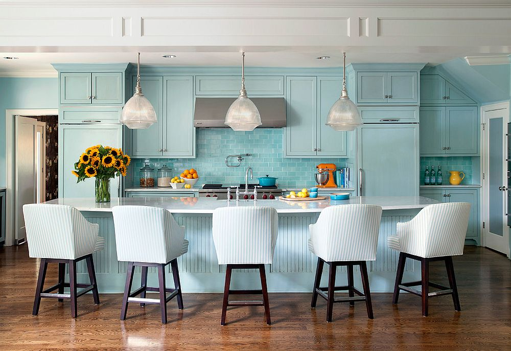 Если вы хотите, чтобы кухня выглядела легко, игриво, весело и воздушно, то лучше использовать средние и более светлые оттенки. Они, как правило, способствуют эффекту света и пространства на кухне. Некоторые хорошие примеры таких цветов: светло-голубой, королевский лазурный, небесно-голубой.