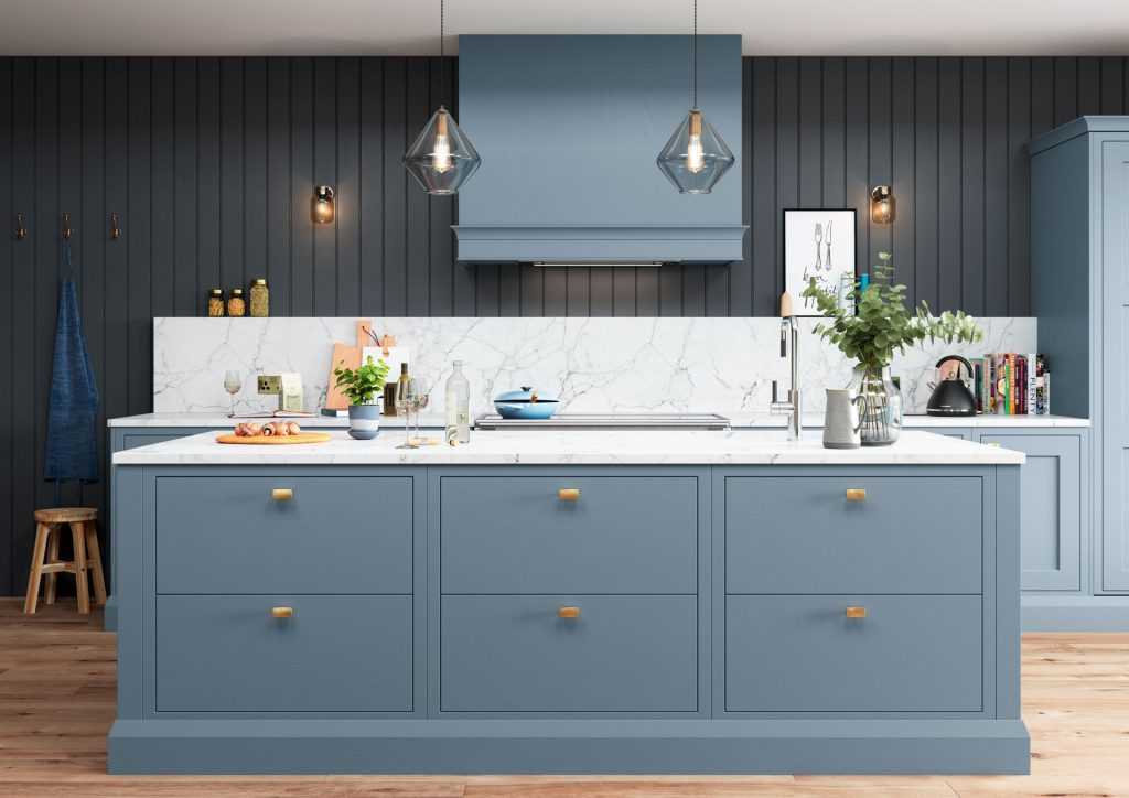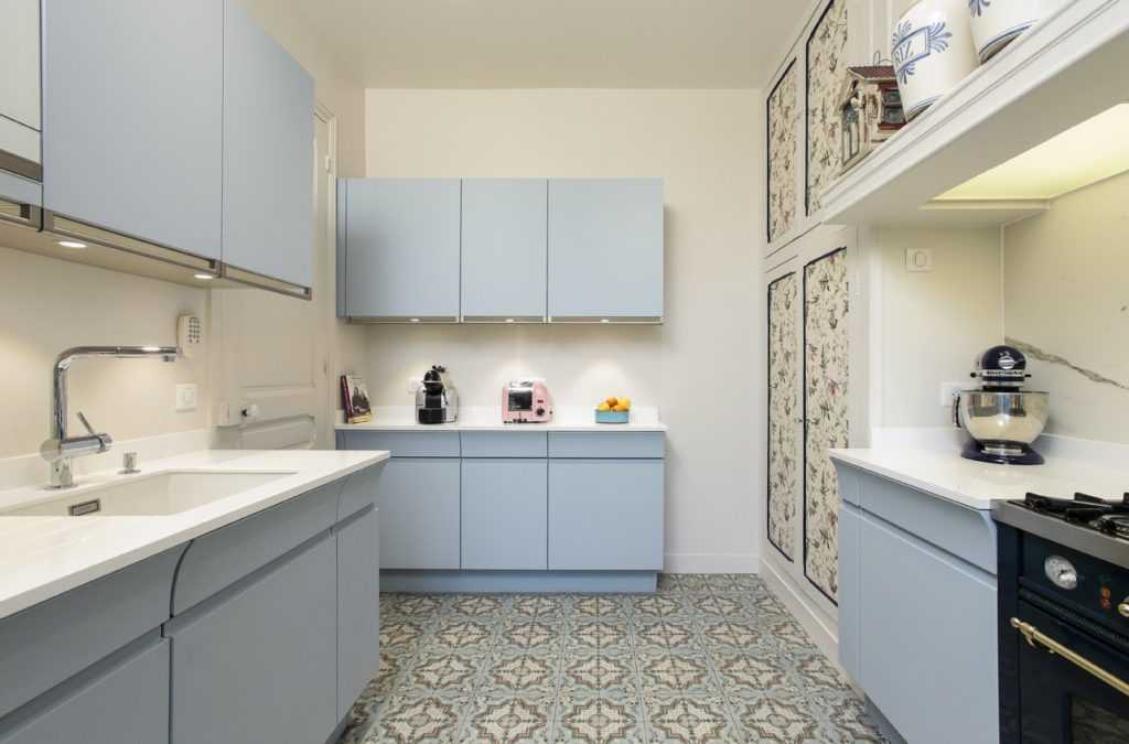 Кухня в голубом цвете: серо-голубая, бело-голубая кухня