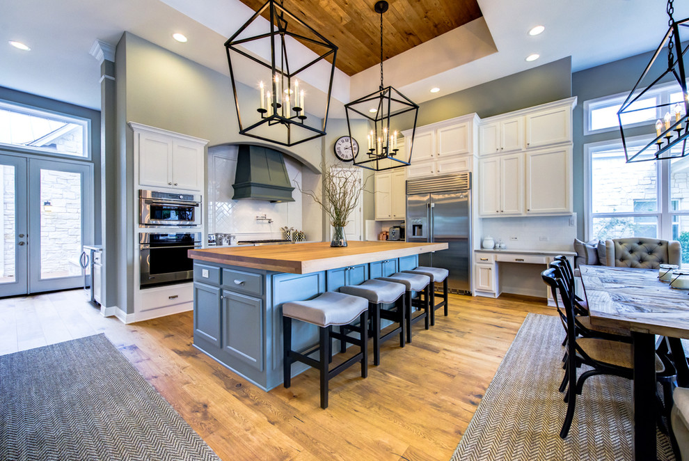Одна из популярных современных тенденций-это смешать голубой и серый цвета. Это сочетание напоминает о матери-природе; представьте себе голубое небо с серыми облаками. Эти два цвета прекрасно контрастируют, усиливая свежесть и расслабляющую природу голубого цвета. Светло-серый цвет сочетается с голубым лучше всего, потому что он контрастирует с ним, не затеняет его положение в качестве центрального фокуса кухни.