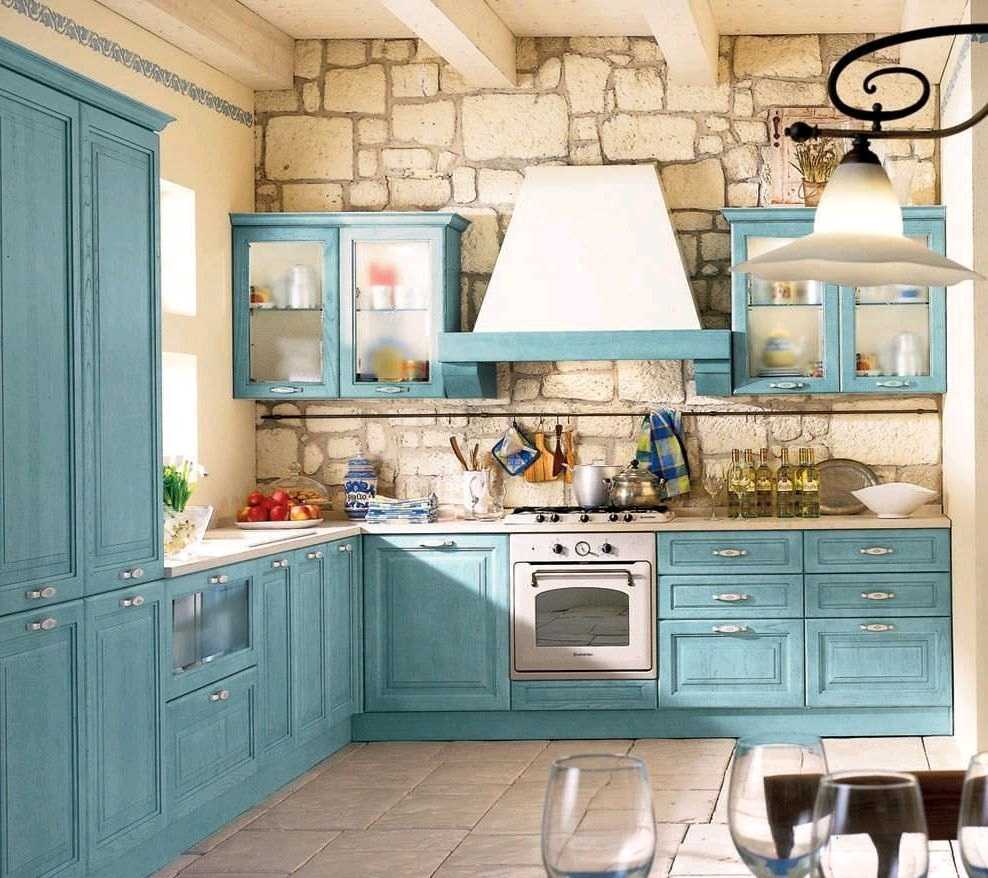 Кухня в голубых тонах красиво будет смотреться в разных стилях – от классического до современного. В наше время этот цвет активно применяется в интерьерах стиля прованс или кантри.