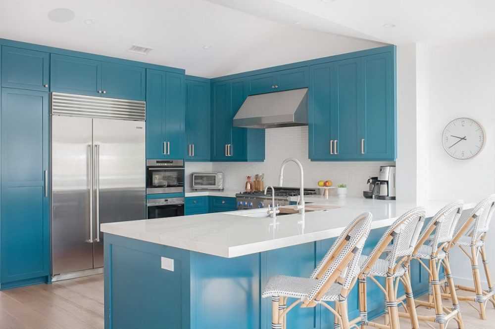 Если ваше сердце любит радикал, попробуйте некоторые уникальные оттенки, такие как персидский индиго, фиолетовый темно-синий и нильский синий. Эти цвета настолько далеки от истинного синего и голубого, что они создают кухню, которая сразу выделяется своим интерьером.