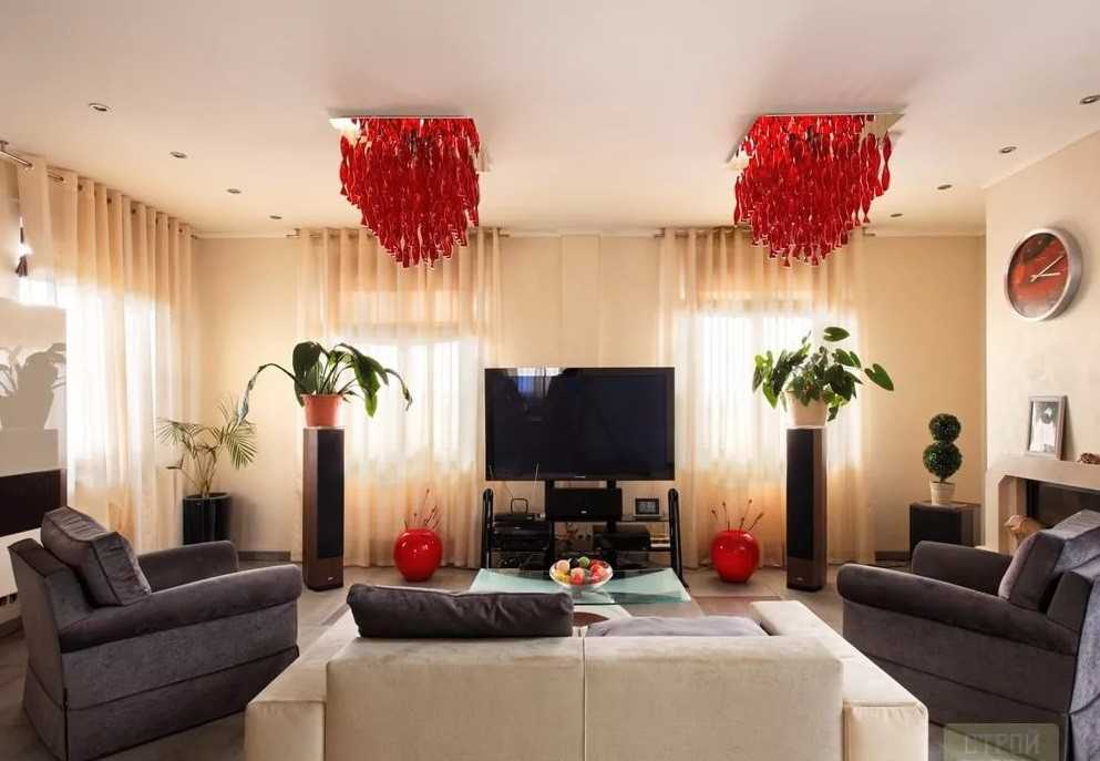 Если судить по фото дизайна интерьера гостиной 20 кв.м, то можно увидеть, что очень важную роль в таких помещениях играет освещение.