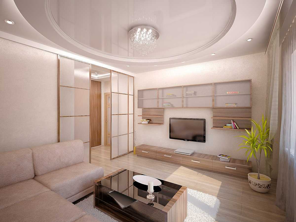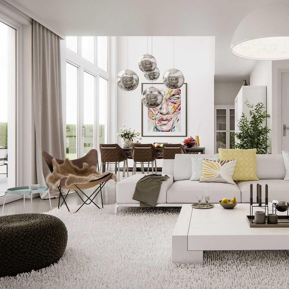 Белый также заслуживает особого внимания, так как он будет не только соответствовать всем акцентам, представленным в зале, но и создаст в комнате ощущение чистоты, свежести и простора. Следует помнить, что потолок должен быть ярче, чем стены. Это решение позволит избежать эффекта подавления и опускания помещения.