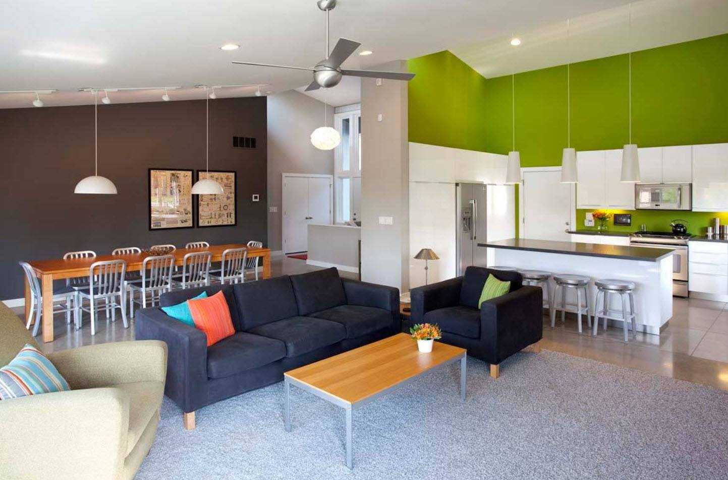 В комнате с открытой планировкой важно соблюдать единую цветовую палитру, чтобы все области помещения визуально сливались друг с другом. Покраска стен нейтральным цветом, таким как белый, кремовый, коричневый, серый или темно-коричневый, обычно является лучшим вариантом, потому что вы сможете использовать различные яркие акценты мебели и прочих аксессуаров, которые идеально координируются с поверхностями. . Если вы предпочли бежевый, то можете использовать цветовую палитру оттенков земли для пространства и добавить акценты в виде шоколадного, коричневого, синего, зеленого и терракотового в разных областях помещения. Что касается белых стен, то можете использовать морскую цветовую палитру, которая включает оттенки, такие как синий, зеленый, коричневый и желтый