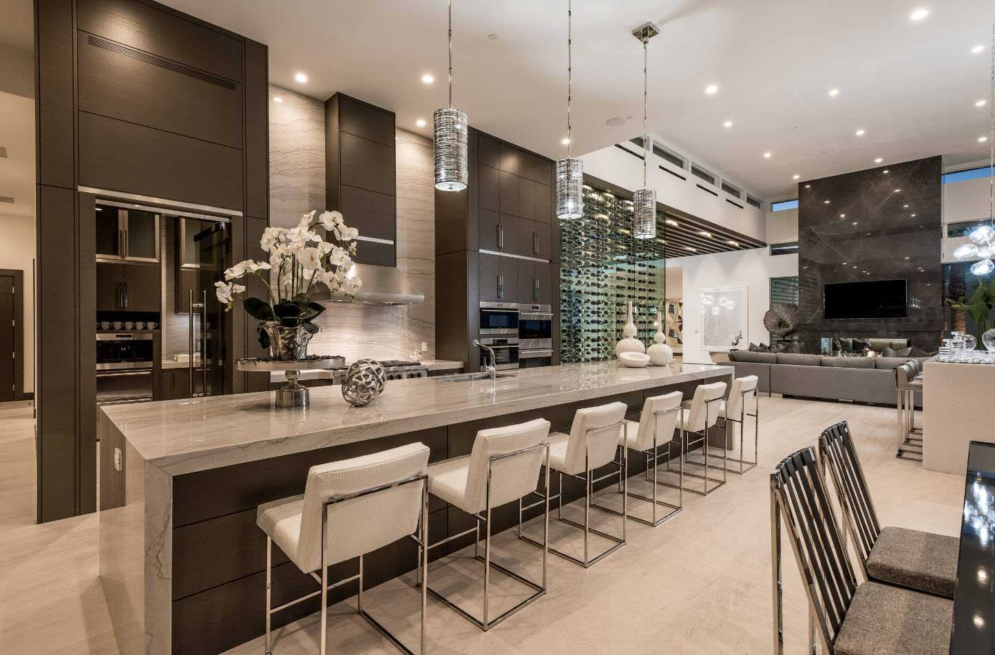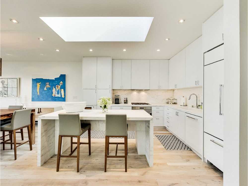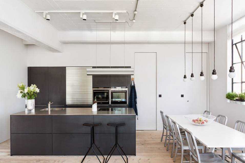 Этот тип кухонного оборудования вращается вокруг одностенной установки, в которой размещаются различные модули, предназначенные для линейной конфигурации, что делает такой выбор самым простым и четким способом составить уголок для приготовления пищи в открытой гостиной. Таким образом, кухонная зона в открытой комнате остается как одно пространство без определенных границ между гостиной и остальной частью жилого пространства.
