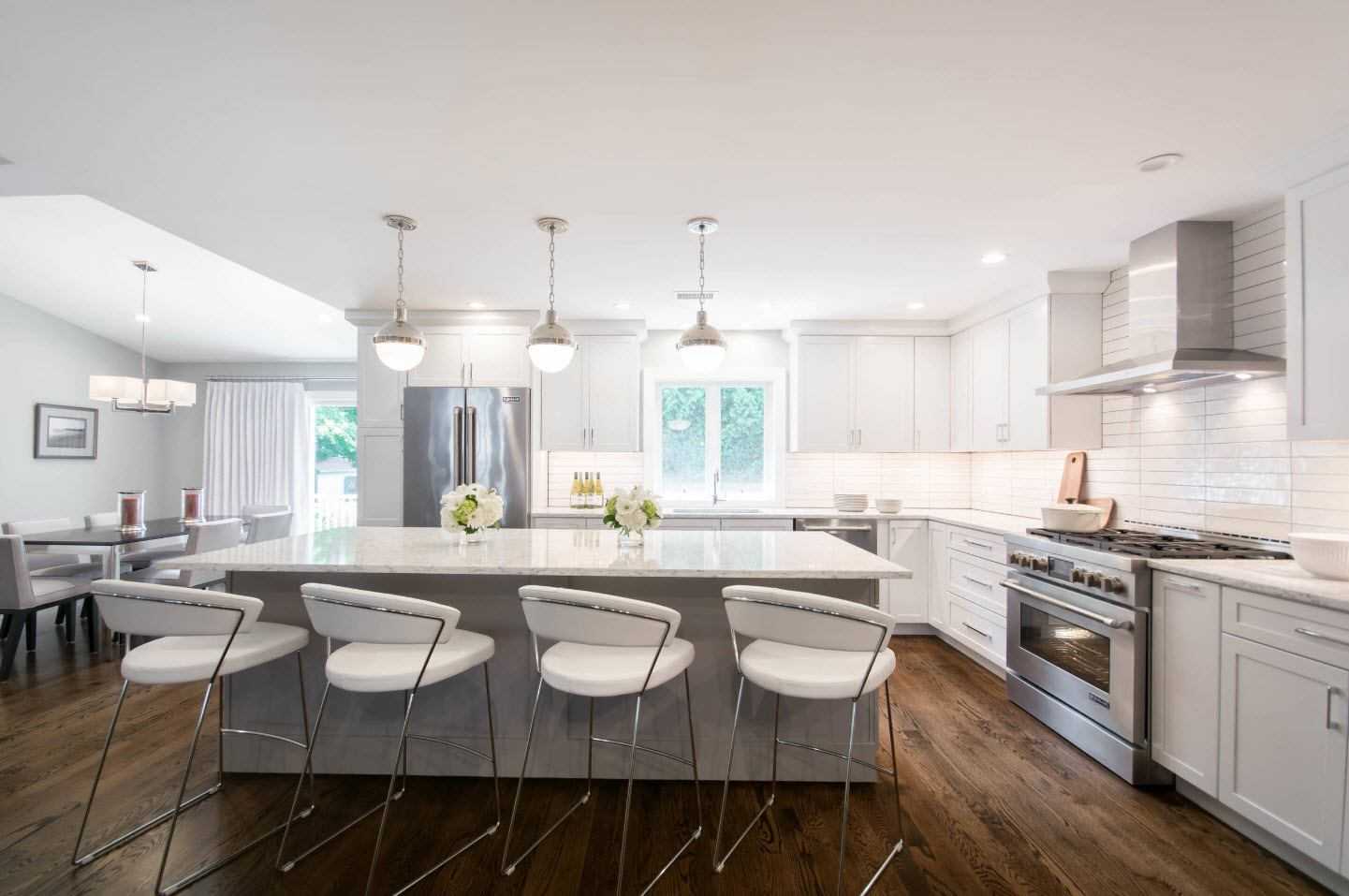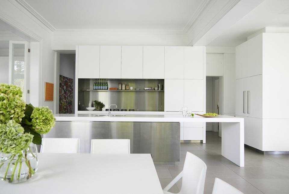 Можно взглянуть на G-образную кухню — это расширение U-образной конфигурации, так как задействованы четыре стены хранения плюс преимущество дополнительного полуострова, в котором может разместиться больше кухонной утвари или барную стойку.