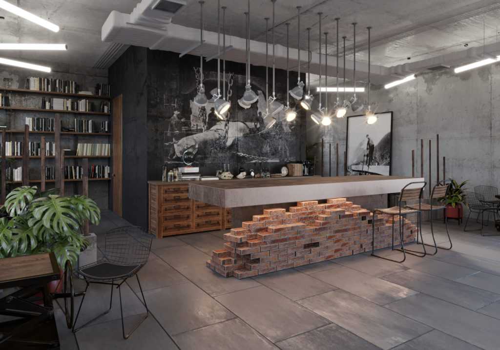 Американский — офис-студия с передвигающимися стеллажами, отличающаяся большой площадью и множеством рабочих мест. Здесь каждый квадратный метр функционален.