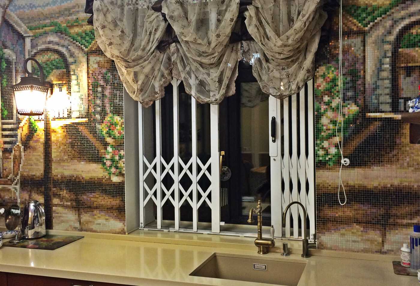 Внутренняя раздвижная металлическая решетка на окне