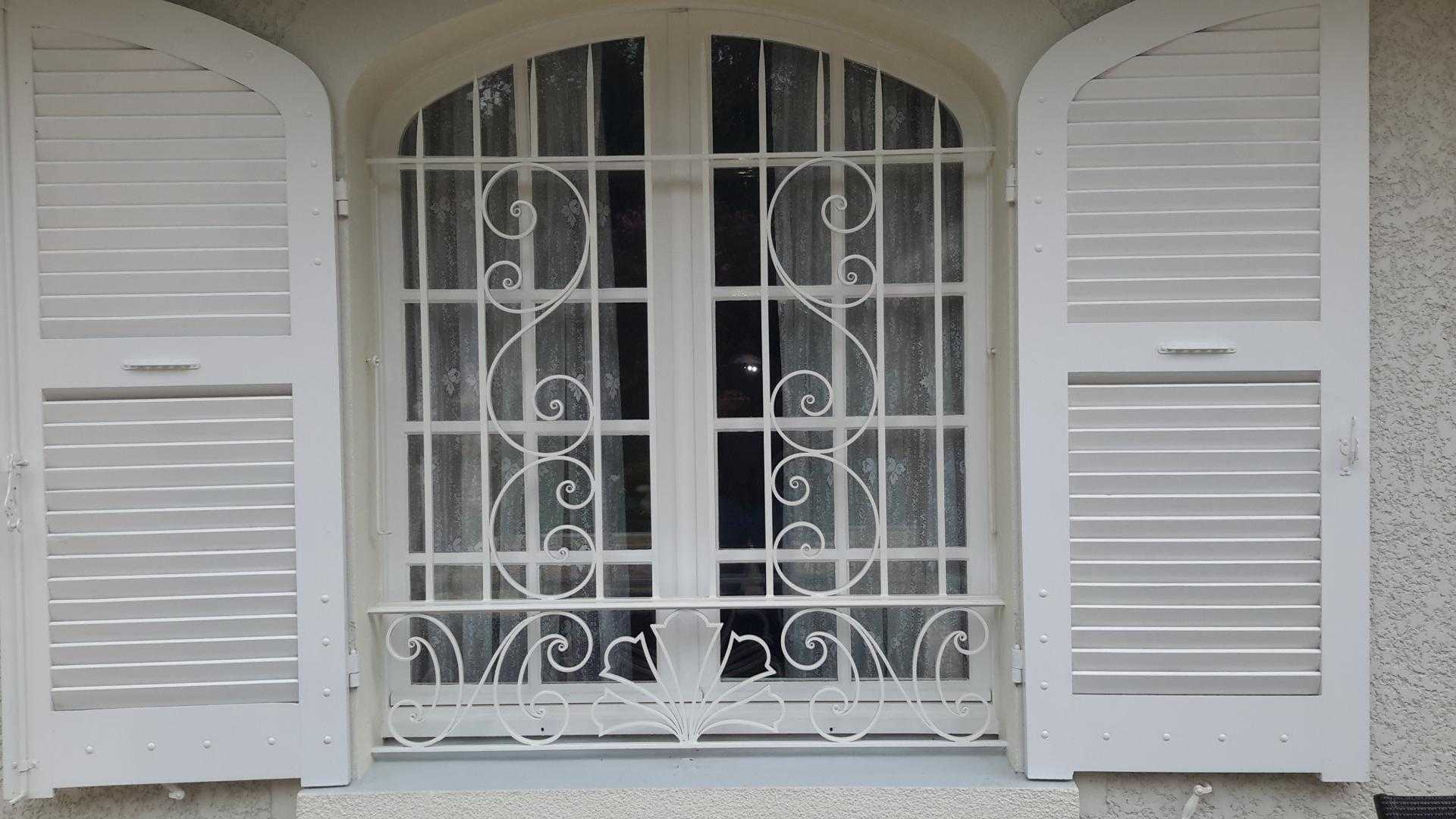 Красивая кованая решетка на верхней части окна