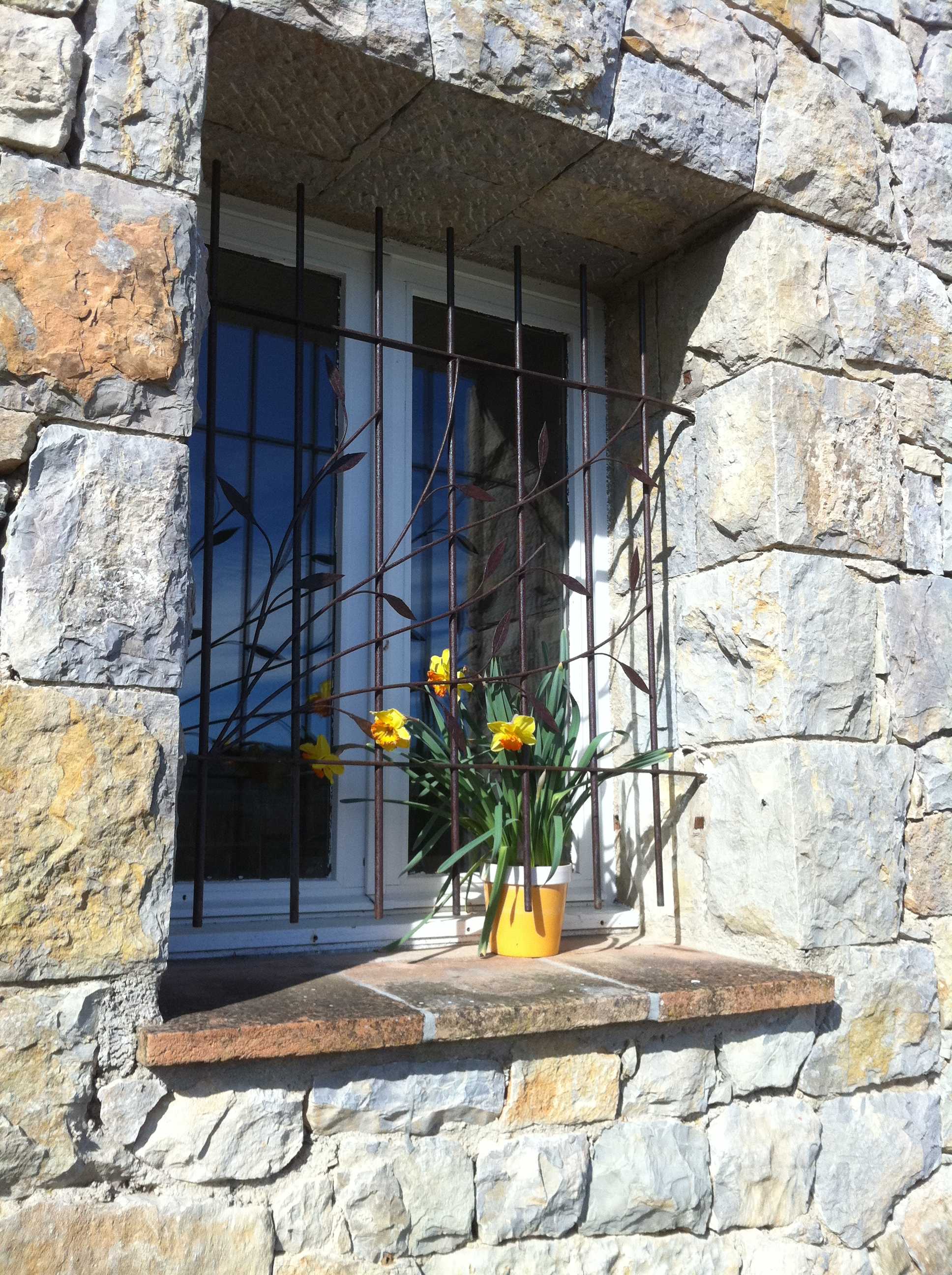 Решетка в средневековом стиле идеально подходит к каменному фасаду дома