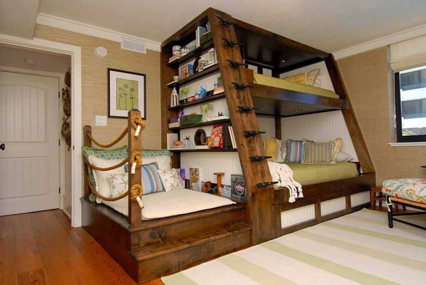 Лестницы, горки и канаты как обязательные элементы двухъярусных кроватей