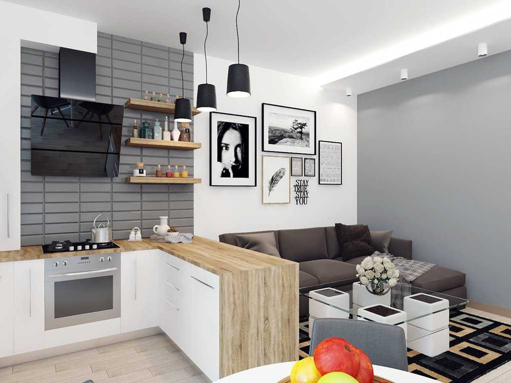 Современные дизайнерские решения позволяют создать интерьер совмещенных комнат на любой вкус. Можно сделать кухню, которая на первый взгляд не сильно будет отличаться от гостиной, гармонично дополняя комнату отдыха. Если вы за четкое разделение зон, то использование разных отделочных материалов и цветов сделает так, что области приготовления еды и проведения досуга будут кардинально отличаться друг от друга.
