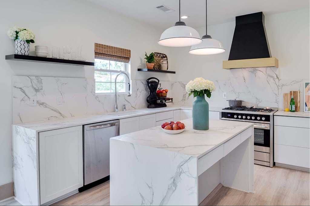Все, что вам нужно на кухне (тарелки, раковина, шкафы, столешница), может поместиться на большом многофункциональном острове. Это привлекательное решение, подходящее для квартир и небольших домов. Оно лучше подходит для современной жизни, чем серия шкафов и столешниц с одной стеной в открытой комнате. Кроме того, остров может визуально расширить площадь. Кухня незаметно превращается в столовую, обеспечивая жителям и гостям плавный переход от приготовления салатов и резки жаркого до поедания аппетитных блюд.