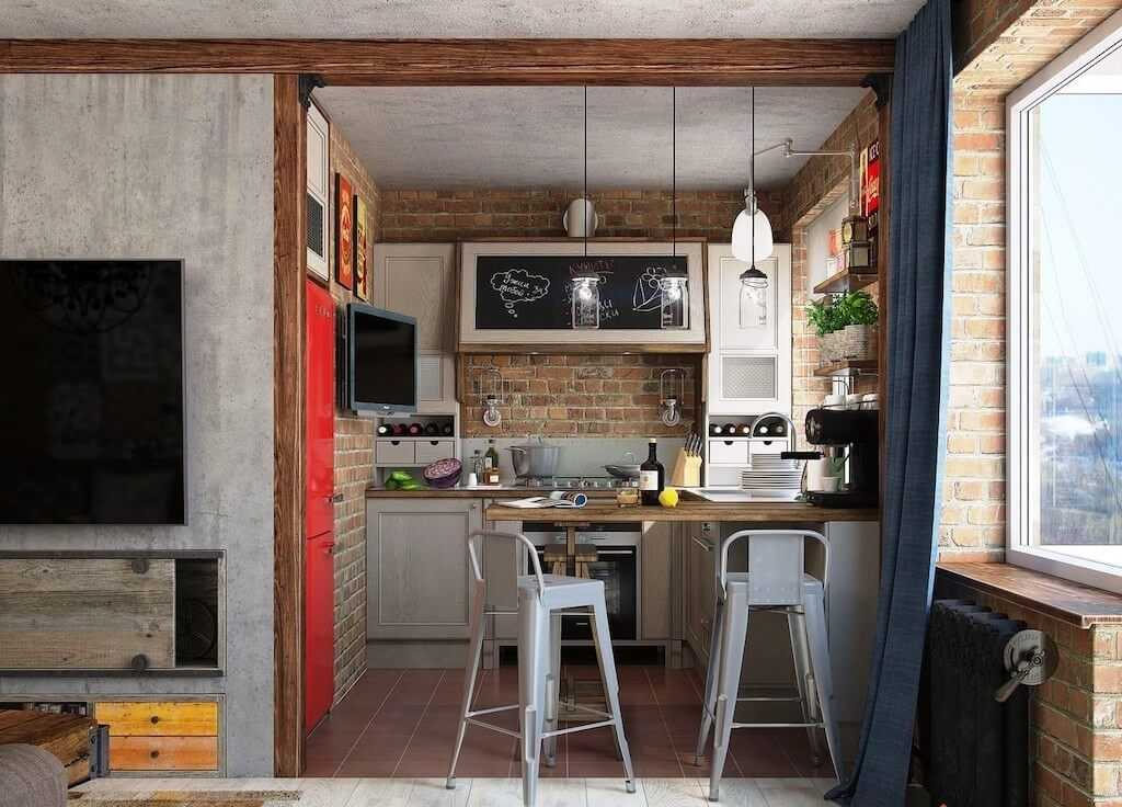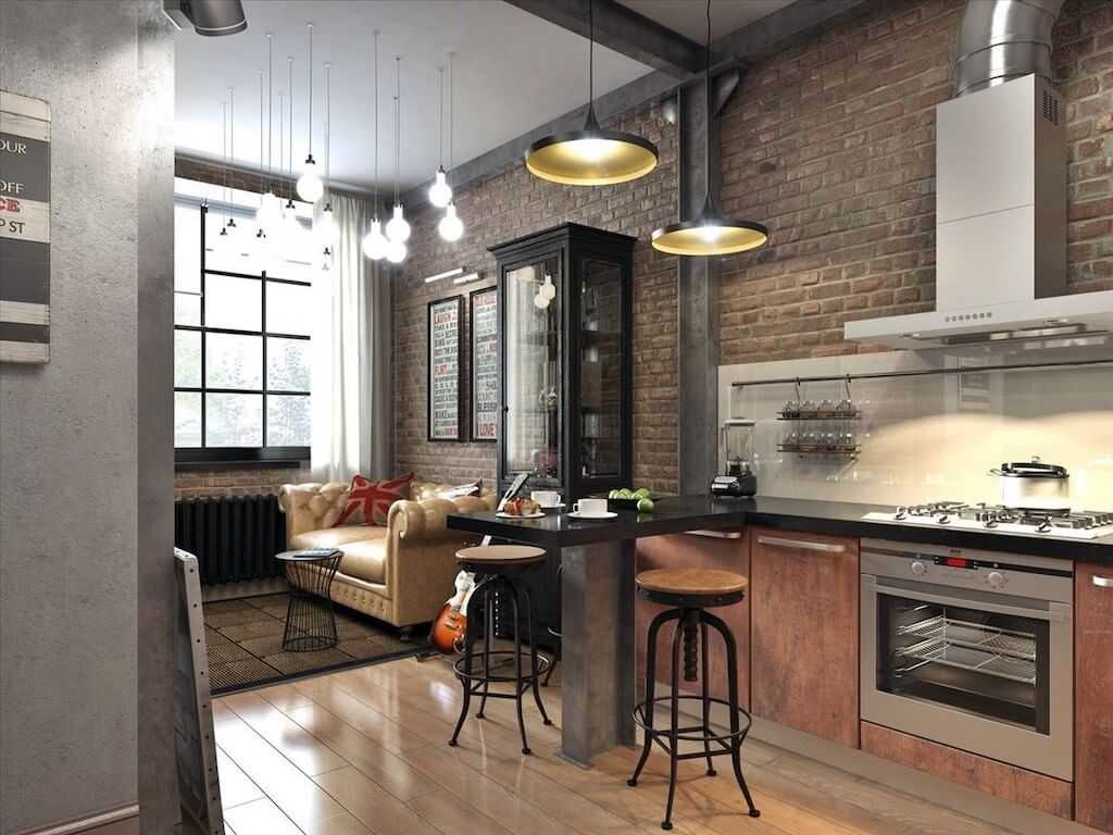 Стиль лофт в интерьере кухонь