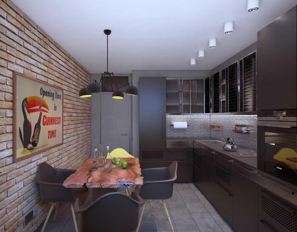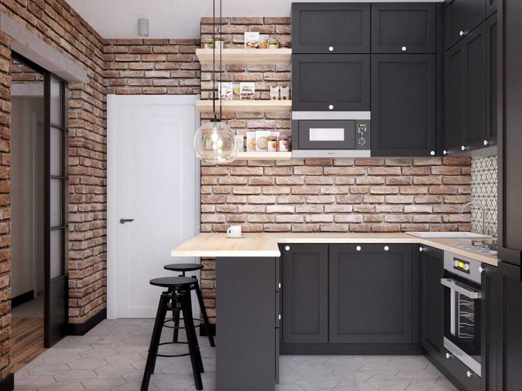 Дизайн-проект кухни площадью 8 кв. м. в стиле лофт.