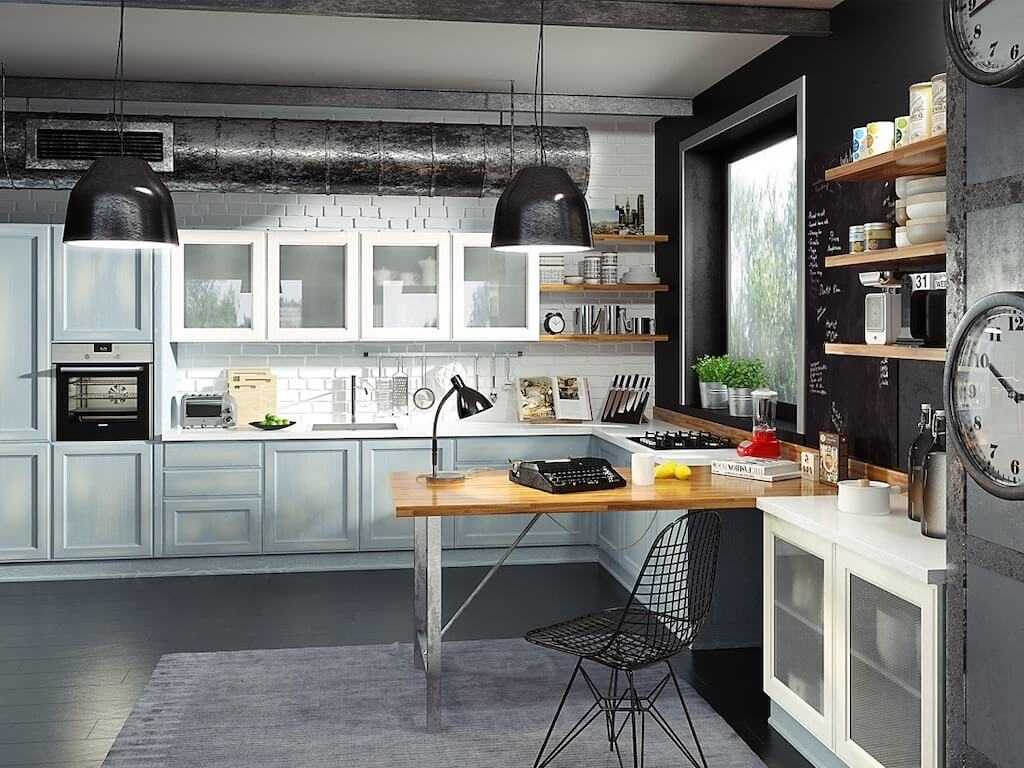 Кухни в стиле лофт – довольно популярная тенденция, она уходит своими корнями в эстетику старых складов, где хранились промышленные материалы или продукты. На кухне на первый план выходит индустриальное творчество. Его основные тезисы: