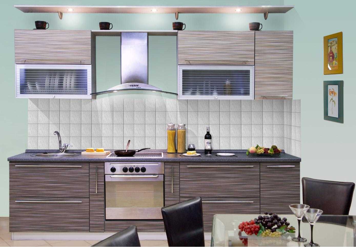 Не рекомендуется выбирать обои с рисунком — лучше, если текстура напоминает грубый камень или бетон. На фартуке обычно используется тонированное стекло или небольшая керамическая плитка светлых оттенков