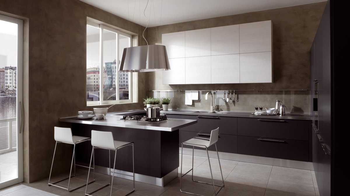 Кухня в темных оттенках довольно необычна, редко кто рискнет и выполнит ее в темном цвете. Также, как и со светлыми оттенками, черный лучше разбавить яркими пятнами и металлическими деталями. Не выбирайте темные цвета для маленьких помещений, иначе это визуально сузит пространство. Темный цвет – только для просторных помещений.