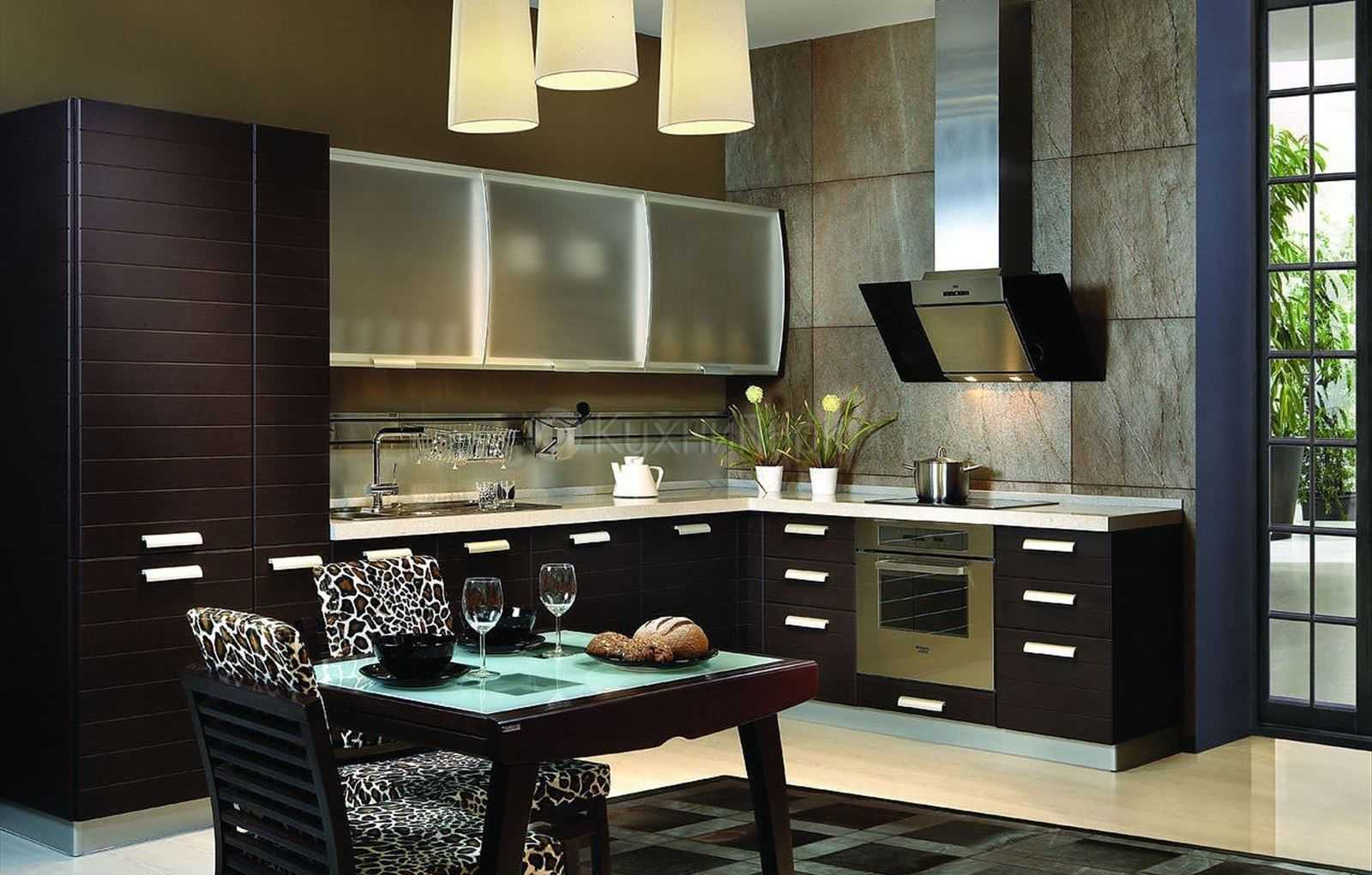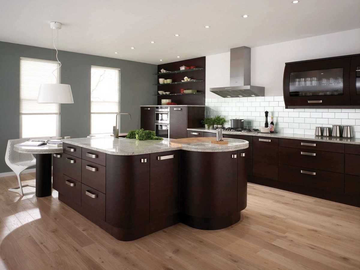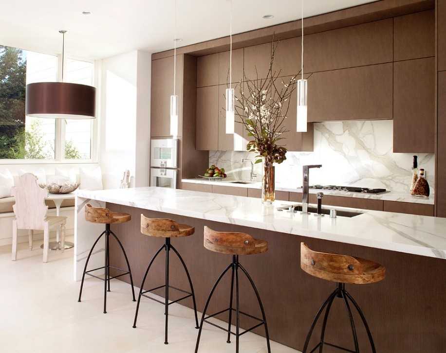 Коричневый. В стиле модерн используют темную цветовую палитру и сочетают с белым или молочно-сливочным. Благородный земляной цвет наполняет пространство элегантностью. В оформлении кухни пользуются и другими оттенками коричневого – шоколадным, коричным, кофейным, песочным. Они неплохо гармонируют с глянцевыми поверхностями и техникой.