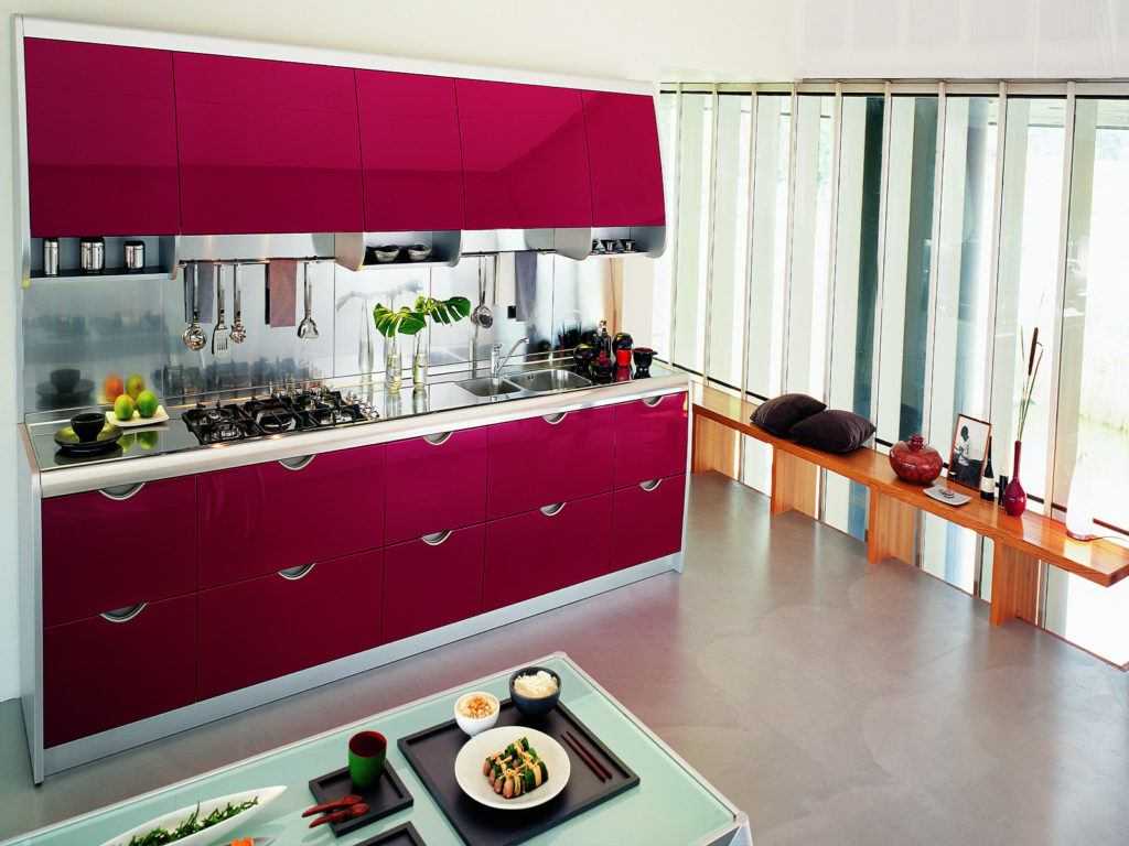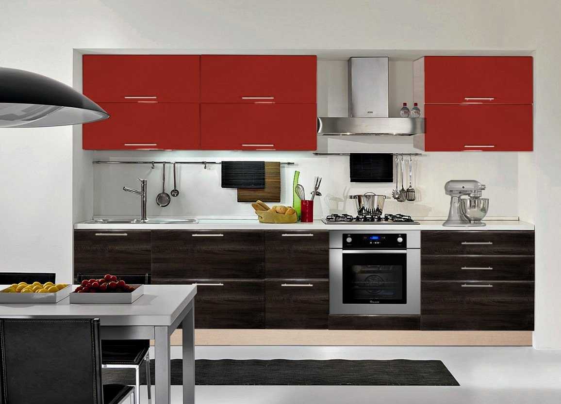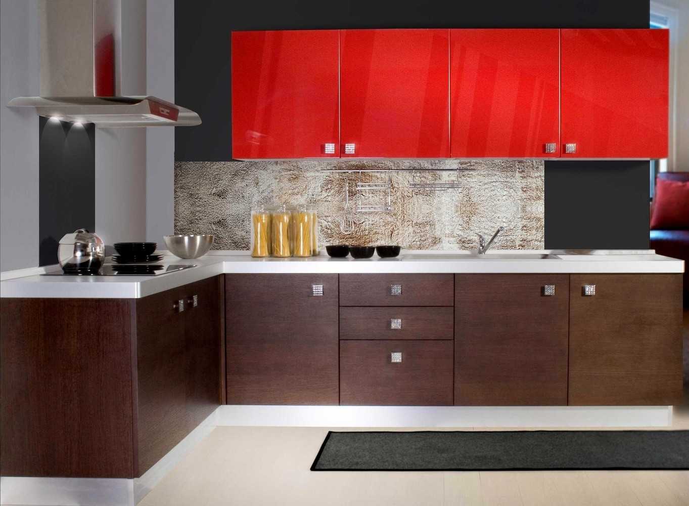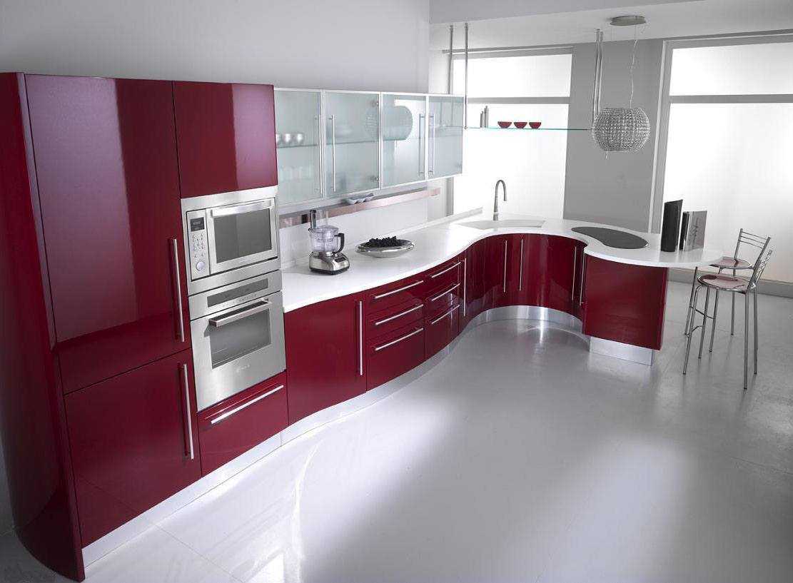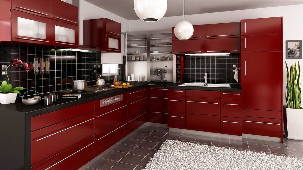 В стиле модерн используют всю цветовую палитру красного: от бледного до темного в зависимости от метража. Хорошо сочетается с белым и черным цветом, придавая кухне жизнерадостность и позитив.