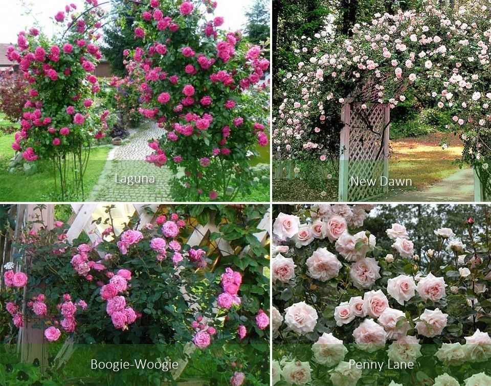 К этой категории причисляют розы Boogie-Woogie, Penny Lane, New Dawn, Laguna. Посредством них украшают беседки и арки.