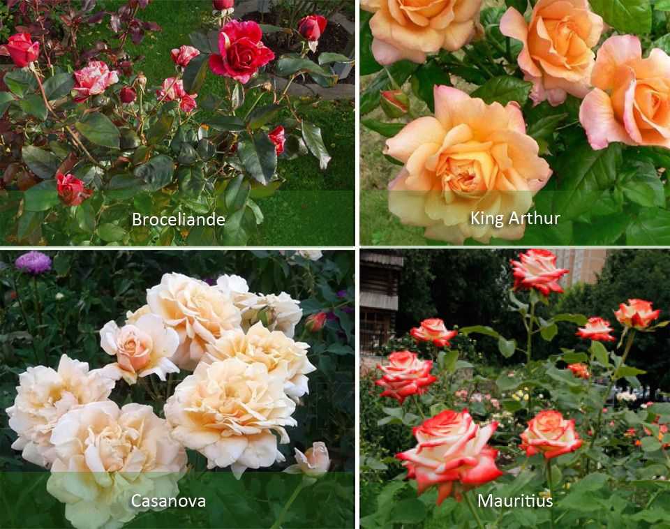 Среди популярных выделяют такие разновидности, как Mauritius, King Arthur, Rose Gaujard, Copacabana, La Palma, Casanova, Broceliande, Imperatrice Farah, Corfu.