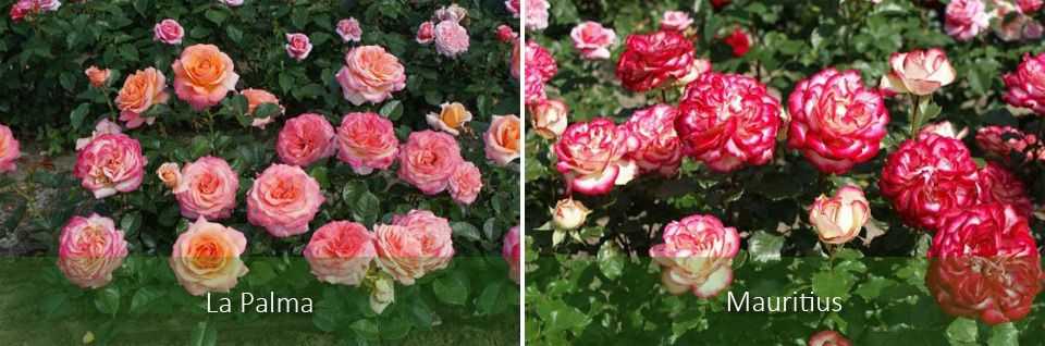 Отличительной особенностью роз патио считается продолжительное и обильное цветение. Данные цветы можно увидеть на террасах. В розарии помещают розы Mauritius, La Palma.