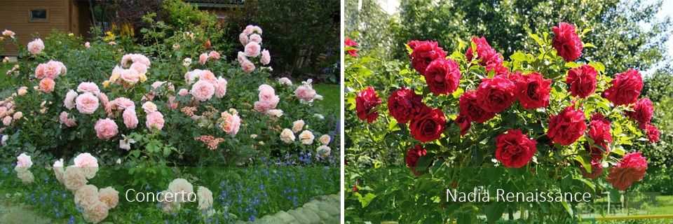 Эти розы делят на три категории. Среди них старые, дикорастущие и повторноцветущие. К наиболее популярным причисляют такие сорта, как Nadia Renaissance и Concerto. Кустовые розы сажают в клумбах прямоугольной и круглой формы.