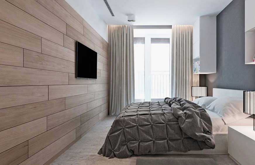 Совет! Если в комнате уже расположена добротная корпусная мебель с темными фасадами, используют ламинированные панели с приглушенной серебристой окраской в сочетании с ламелями утонченного бежевого тона. Хорошо гармонирует охра и нежно-шоколадный оттенок.