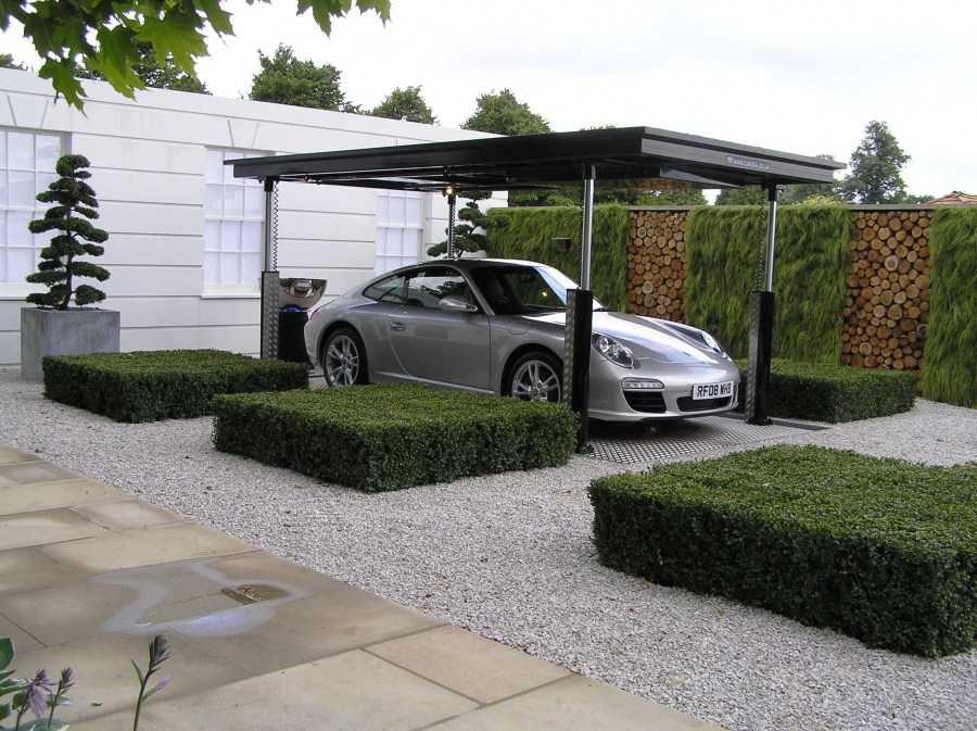 Стиль радует обилием нестандартных решений. В дизайне вытянутого участка появятся комбинации конструкций непривычных фирм, собранных из стекла и металла.