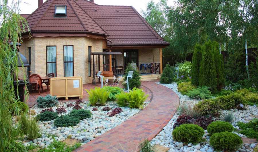 Садовая дорожка выступает в роли «позвоночника» участка, так как связывает между собой различные зоны и обеспечивает доступ к ним. Вариантов оформления тропинок много от стандартной протоптанной до уложенной отдельными гладкими камнями, асфальтом или специальной брусчаткой.