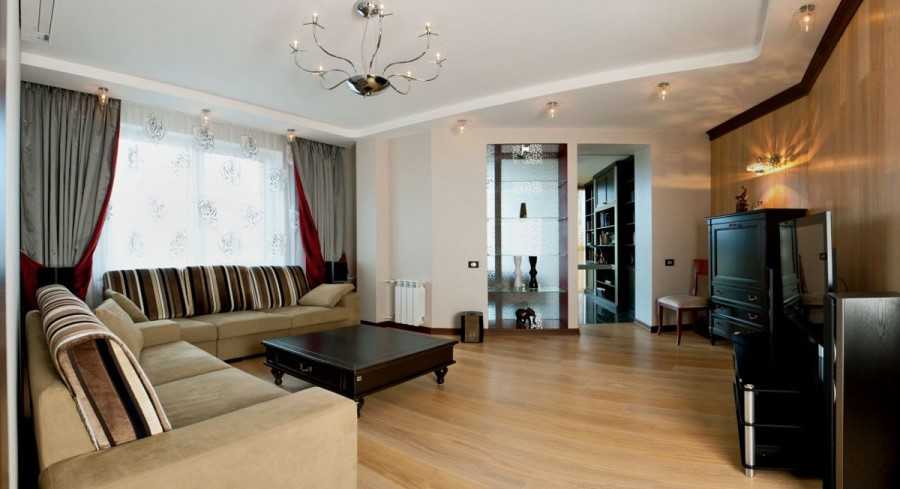 Такое смещение от центра позволяет зрительно изменять пропорции гостиной и акцентирует внимание на какой-то ее части