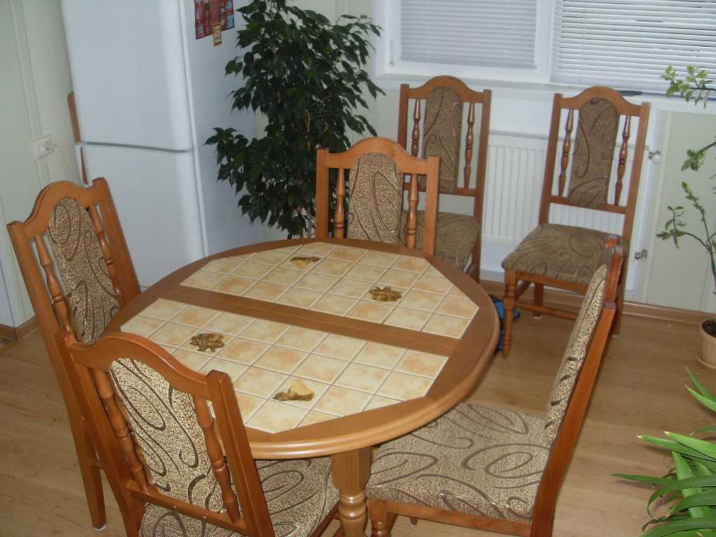 Раскладной стол, как правило, ставят в небольшой кухне. Он занимает немного места, для того, чтобы пообедала небольшая семья, его площади вполне достаточно, а в случае прихода гостей можно разложить.