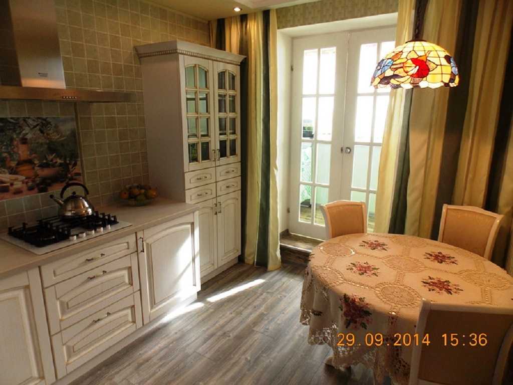 Чтобы сделать кухню более уютной, следует выбирать обеденный стол с декором. Для классического стиля подойдет стол из массива дерева или МДФ с патиной. Такое покрытие визуально состаривает предмет, делает его более ценным для исторических интерьеров, особенно для прованса. Фурнитура тоже является украшением столов. Всевозможные литые ручки из бронзы, кованые элементы каркаса, деревянные фигурные ножки, выточенные на токарном станке, делают предметы оригинальными, непохожими на другие.