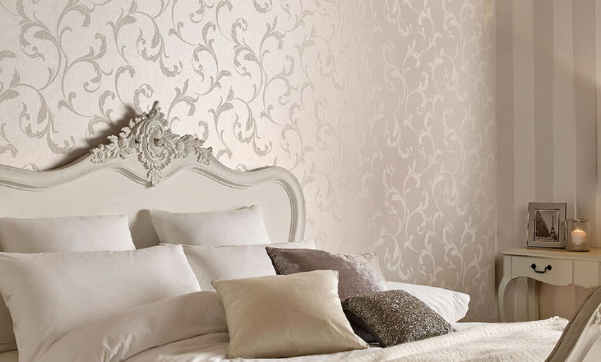 Здесь также можно орнаментальными обоями украсить ниши или использовать покрытия с декоративной печатью или нанесенной фреской для создания роскошного панно