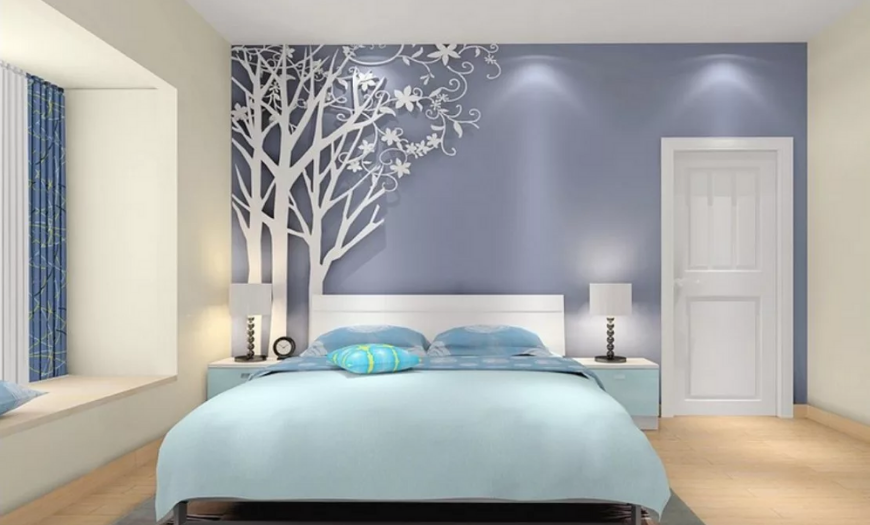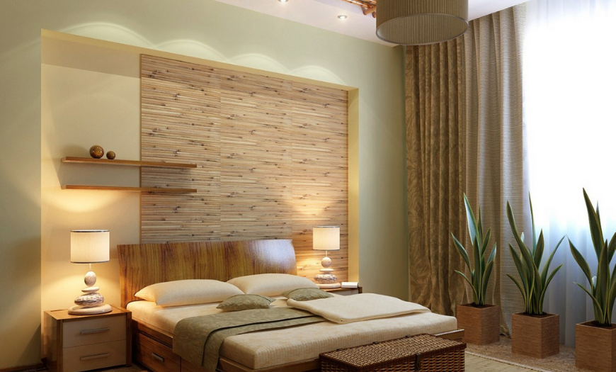 Желательно располагать акцентные участки у изголовья кровати или возле дивана. Однако не возбраняется переносить их и на противоположную стену.