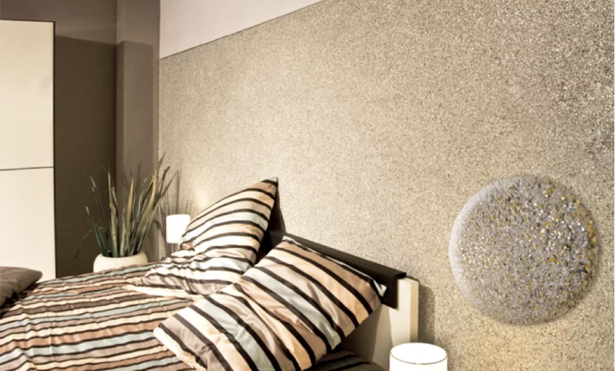Жидкие обои прекрасно подойдут для того, чтобы скрыть явные неровности стены. Наносятся обыкновенным шпателем. Легко смываются.